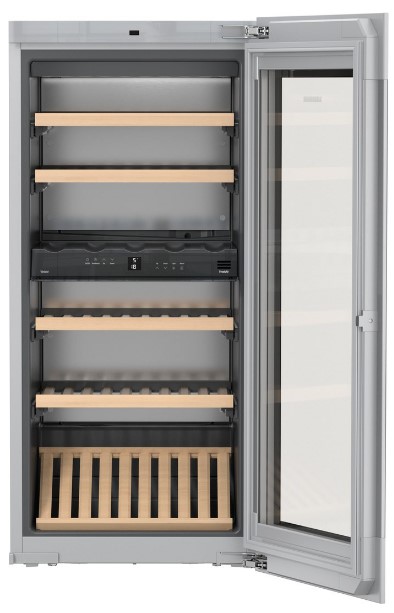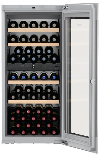Liebherr EWTgb 2383 Vinidor — встраиваемая модель с сенсорным управлением. Наличие двух независимых зон позволяет одновременно хранить как красные, так и белые вина при оптимальной для их сервировки температуре. Функция блокировки контрольной панели исключает возможность случайного отключения прибора.